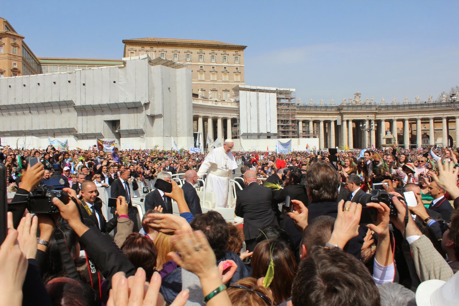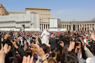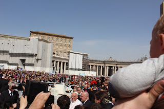 Wczoraj na Placu świętego Piotra, Papież Franciszek zauważył znajomego tuż obok miejsca gdzie stałam w tłumie. Zatrzymał papamobile i wysiadł, żeby się przywitać! Wielkie emocje!