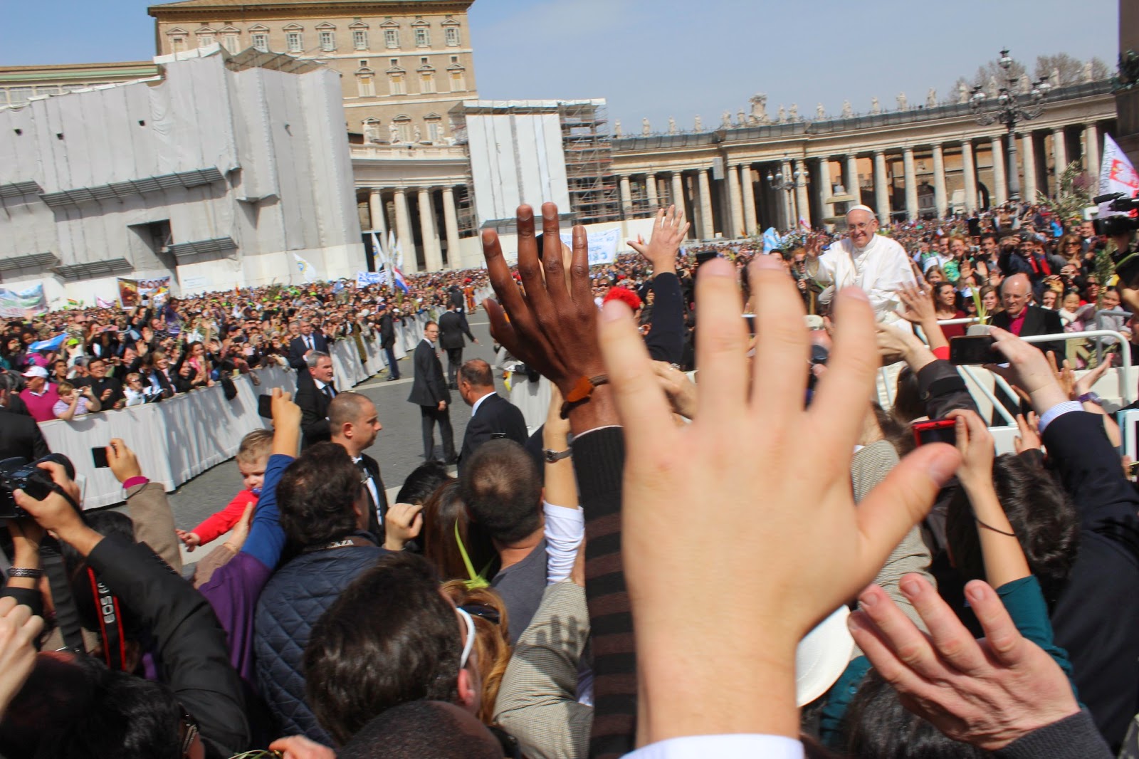 Wczoraj na Placu świętego Piotra, Papież Franciszek zauważył znajomego tuż obok miejsca gdzie stałam w tłumie. Zatrzymał papamobile i wysiadł, żeby się przywitać! Wielkie emocje!